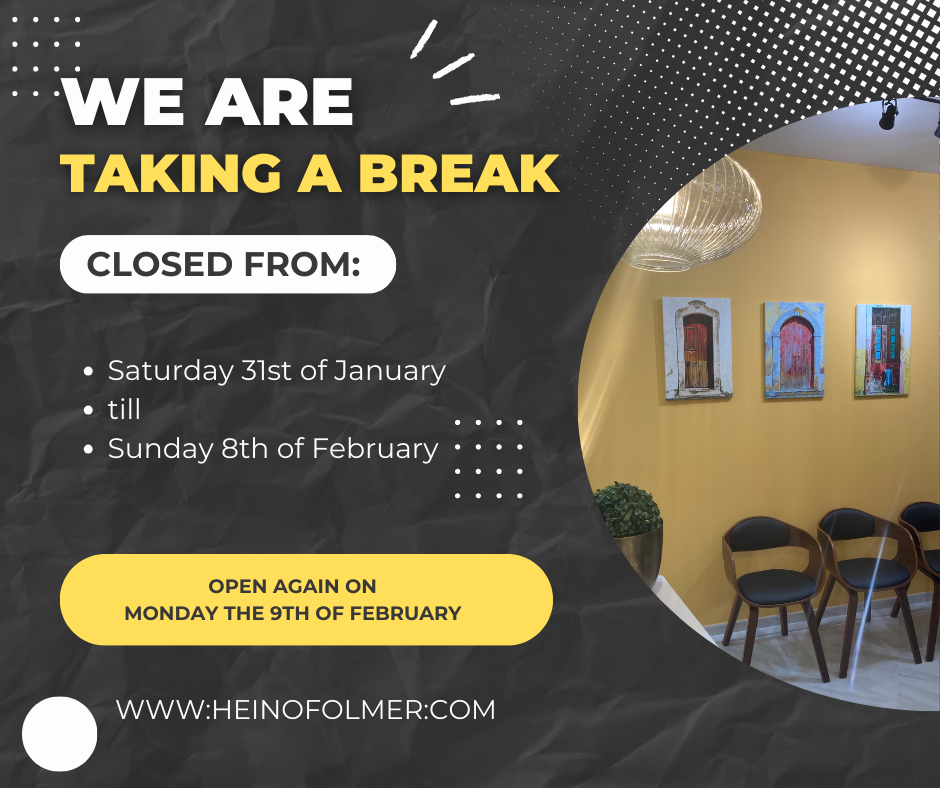We will be closed from Saturday 31 January to Sunday 8 February.